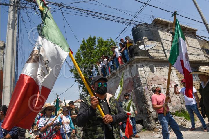 CALIMAYA, ESTADO DE MÉXICO, 05MAYO2022.- Habitantes de la Concepción Coatipac llevan más de 90 años representando la batalla del 5 de Mayo, entre el ejército francés y el ejército mexicano encabezados por Ignacio Zaragoza, banderas ondeando de ambos lados y cañonazos es como los pobladores reviven esta batalla en las calles de este poblado. FOTO: CRISANTA ESPINOSA AGUILAR /CUARTOSCURO.COM