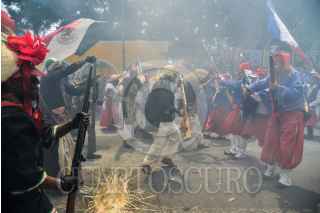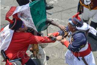 CIUDAD DE MÉXICO, 05MAYO2022.- Vecinos de la colonia del Peñón de los Baños, representaron la Batalla de Puebla ocurrida el 5 de mayo de 1862. FOTO: MARIO JASSO/CUARTOSCURO.COM