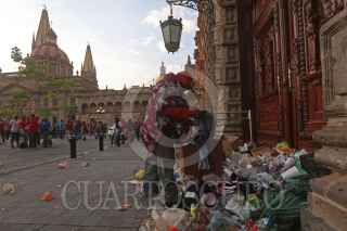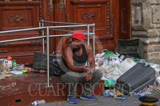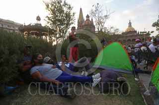 GUADALAJARA, JALISCO, 05MAYO2022.- Pepenadores de los basureros de Matatlán y Los Laureles realizan un plantón a las afueras de Palacio de Gobierno, esto en espera de que autoridades del estado les den una respuesta ya que entre el Gobierno y la empresa Caabsa Eagle existe un proceso que atraviesan dichos basureros por inconsistencias en su operación, por dichas razones los que se están viendo más afectados son los pepenadores. FOTO: FERNANDO CARRANZA GARCIA / CUARTOSCURO.COM