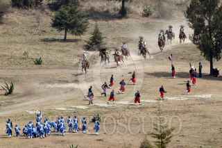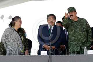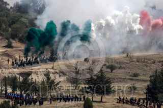 PUEBLA, PUEBLA, 06MAYO2022.- Elementos del ejército realizaron escenificación de La Batalla del 5 de Mayo de 1862 en la XXV Zona Militar. Al evento acudieron Luis Miguel Barbosa, Gobernador del estado, José Alfredo González, comandante de la VI Región Militar y Eduardo Rivera, Alcalde de Puebla. FOTO: MIREYA NOVO/ CUARTOSCURO.COM