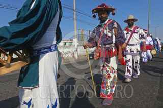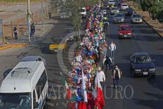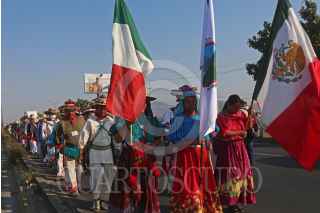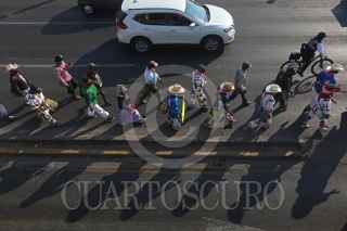 ZAPOPAN, JALISCO, 06MAYO2021.- Alrededor de 200 indígenas y después de 353 Kilómetros de recorrido y 11 días de caminata, llego a Zapopan “La Caravana de la Dignidad y la Conciencia Wixárika” integrada por autoridades tradicionales y agraria s de San Sebastián Teponahuaxtlán y Tuxpan de Bolaños. La intención es caminar hasta Palacio nacional para reunirse con el Presidente de la Republica, Andrés Manuel López Obrador y poder hacerle la petición de la restitución de 11,000 hectáreas de la zona Huajini, que lleva casi 50 años de litigio sin solución, misma que actualmente posen ganaderos de Nayarit, pese a que anteriormente se resolvió a favor de las comunidades indígenas. FOTO: FERNANDO CARRANZA GARCIA / CUARTOSCURO.COM