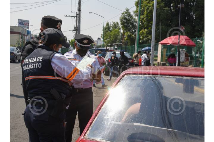 TOLUCA, ESTADO DE MÉXICO, 06MAYO2022.- De forma conjunta elementos de la Secretaría de Seguridad Estatal, policías municipales de Toluca y la Guardia Nacional implementan los operativos Plan 3, Pegaso y Rastrillo en la zona de la Terminal de Autobuses de Toluca, revisando transporte público, automóviles y motocicletas, estas últimas que se ven involucradas en diversos delitos entre ellos robó de celular y a transeúnte. FOTO: CRISANTA ESPINOSA AGUILAR /CUARTOSCURO.COM