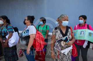 VERACRUZ, VERACRUZ, 06MAYO2020.- Las integrantes de la Caravana de Madres Centroamericanas que buscan a sus hijos y migrantes desaparecidos en territorio mexicano se reunieron con el vicecónsul de la región para expresar sus necesidades y exigencias con autoridades hondureñas en la búsqueda de sus familiares. De forma individual cada una de las madres y familiares enunciaron sus casos y las autoridades se comprometieron a ayudar en cada uno de ellos. Esta reunión se llevó a cabo al momento en que el presidente Andrés Manuel López Obrador se reunión en Honduras con la presidenta Xiomara Castro. FOTO: ISABEL MATEOS /CUARTOSCURO.COM