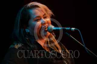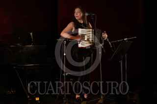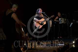 CIUDAD DE MÉXICO, 07MAYO2022.- Anoche, la cantante y compositora Vivir Quintana, acompañada de Carmen Ruíz, en el teclado y acordeón, y Pilar Sánchez, en el contrabajo, ofrecieron el concierto "Tómate estas canciones conmigo", realizado en el Teatro Bar El Vicio. FOTO: GRACIELA LÓPEZ /CUARTOSCURO.COM