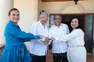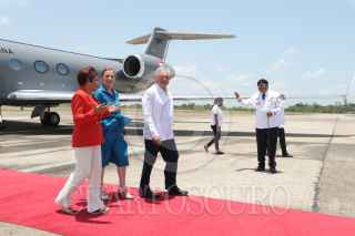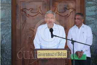 BELICE, BELICE, 07MAYO2022.- Andrés Manuel López Obrador, presidente de México, y Beatriz Gutiérrez Mueller, investigadora y primera dama, encabezaron la visita de trabajo a Belice, en donde fueron recibidos por el primer ministro John Briceño. Durante la visita fue firmado el acuerdo para el desarrollo del programa Sembrando Vida en dicho territorio. FOTO: PRESIDENCIA/CUARTOSCURO.COM