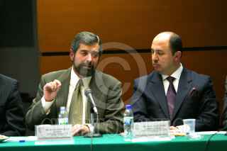 MEXICO, D.F.14DICIEMBRE2006.- Juan Ramón de la Fuente, rector de la Universidad Nacional Autónoma de México y el Raúl Padilla Orozo, presidente de la comisión de presupuesto de la cámara de diputados, durante la reunión que el rector sostuvo con dicha comisión. FOTO: NELLY SALAS/CUARTOSCURO.COM