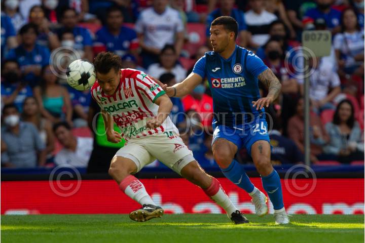 CIUDAD DE MÉXICO, 07MAYO2022.- Partido de fútbol correspondiente al repechaje del torneo Clausura 2022 “Grita por la Paz” de la Liga MX entre Cruz Azul vs Necaxa en el Estadio Azteca. FOTO: EDGAR NEGRETE/CUARTOSCURO.COM