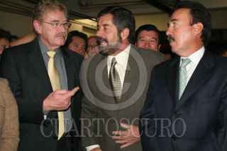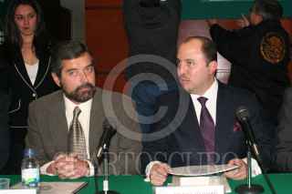 MÉXICO, D.F. 14DICIEMBRE2006.- El rector de la UNAM Juan Ramón de la Fuente acudió a la Cámara de Diputados. El diputado federal Raúl Padilla Orozco le hizo entrega de un libro acerca de Manuel Gómez Morín. FOTO: PAOLA HIDALGO/CUARTOSCURO.COM