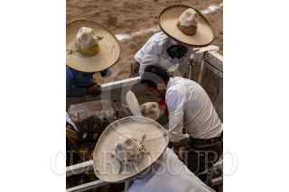 ZACATECAS, ZACATECAS, 08MAYO2022.- La charrería es una tradición que conjunta habilidades ecuestres, vaqueras y ganaderas propias del charro mexicano. Se realiza como un deporte y espectáculo de gran popularidad en el país. El 1 de diciembre de 2016, fue declarada Patrimonio Cultural Inmaterial de la Humanidad por la UNESCO. Fue en el siglo XIX y XX, cuando ganaderos dedicados a la cría y pastoreo de ganado, como parte de su trabajo, desarrollaron técnicas lúdicas de manejo de ganado que luego se convertirían en un deporte. Entre sus tareas en el rancho estaban cazar ganado fugitivo, clasificar para identificación y atrapar toros y caballos. Estos trabajos fueron las primeras versiones de los eventos charros. Antes de la Revolución Mexicana las competencias de trabajo en el rancho eran generalmente entre haciendas, pero luego de la disolución de las haciendas por la Revolución Mexicana, las tradiciones charras se perdían lentamente. Grupos de charros de todo el país formaron la Asociación Nacional de Charros en 1921. El torneo charro o charreada consta de nueve eventos o "suertes charras" organizados en un orden particular (nueve para los hombres y uno para las mujeres): cala de caballo, piales, colas en el lienzo, escaramuza, jineteo de toro, terna en el ruedo, jineteo de yegua, manganas a pie o ha caballo y paso de la muerte. Los equipos, llamados asociaciones, compiten entre sí para convertirse en campeones estatales, regionales y nacionales. Los competidores son juzgados y evaluados tanto por el estilo como por la ejecución. Las imágenes fueron realizadas en las competencias del pasado Campeonato Nacional del Mezcal y la Plata Zacatecas 2022 realizado en el lienzo charro Antonio Aguilar; en el cual, Rancho El Quevedeño, de Jalisco, fue el campeón nacional. FOTO: ADOLFO VLADIMIR /CUARTOSCURO.COM