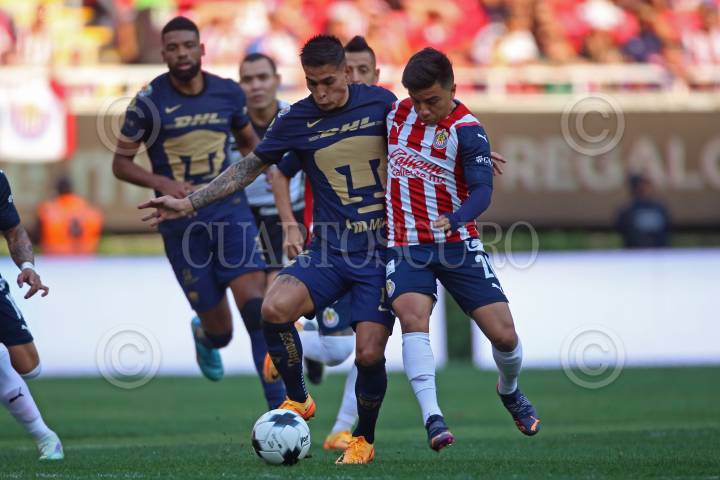 ZAPOPAN, JALISCO, 08MAYO2022.- Esta tarde en el Estadio Akron se lleva a cabo el juego entre las Chivas de Guadalajara frente al conjunto de Pumas de la UNAM, esto en partido correspondiente a la reclasificación del Torneo Grita México Clausura 2022 de la Liga MX, el marcador al final es de 4-1 a favor del equipo de casa. FOTO: FERNANDO CARRANZA GARCIA / CUARTOSCURO.COM