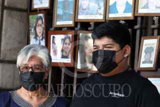 CUERNAVACA, MORELOS, 10MAYO2022.- Martin Huicochea de 18 años, hijo de la activista social Ana Luisa Garduño, asesinada el pasado 28 de enero en Temixco, Morelos, coloco este mañana su foto en el Memorial de las Victimas en el portal del Palacio de Gobierno. La foto de la activista fue colocada a lado de la de su hija Ana Karen Huicochea, asesinada en el 2012 presuntamente por su novio. Durante años Ana Luisa Garduño asumió la búsqueda de justicia para el caso de su hija y acompaño a otros familiares de victimas de la violencia. FOTO: MARGARITO PÉREZ RETANA / CUARTOSCURO.COM