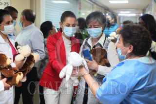 CIUDAD DE MÉXICO, 10MAYO2022.- Con motivo del Día de las Madres, la Jefa de Gobierno, Claudia Sheinbaum Pardo, acudió al Hospital Materno Infantil “Inguarán” de la Secretaría de Salud de la Ciudad de México (SEDESA), para obsequiar figuras de peluche a las mamás hospitalizadas así como a las del personal de salud. En el recorrido por el Hospital Materno Infantil “Inguarán”, que se ubica en la Alcaldía Venustiano Carranza, estuvieron presentes la secretaria de Salud, Oliva López Arellano; y el director general de Prestación de Servicio Médicos y Urgencias de SEDESA, José Alejandro Ávalos Bracho y la directora del Hospital, doctora Luci Aguirre Antonio. FOTO: GOBIERNO DE LA CIUDAD DE MÉXICO/CUARTOSCURO.COM