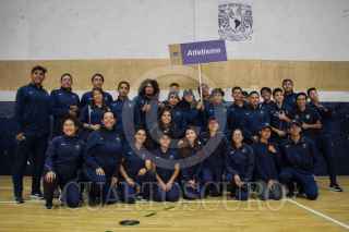 CIUDAD DE MÉXICO, 11MAYO2022.-Ceremonia de En el Frontón Cerrado universitario se llevó acabo el abanderamiento del contingente deportivo universitario que participará en la Universiada Nacional, Juegos Nacional Conade y Paralimpiada Nacional 2022. FOTO: DENISSE HERNÁNDEZ /CUARTOSCURO