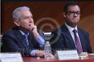 CIUDAD DE MÉXICO, 11MAYO2022.- Alfred Hanning, director ejecutivo AFI; Jesús de la Fuente Rodríguez, presidente de la CNBV; Gabriel Yorio González, subsecretario de Hacienda y Crédito Público; Lucía Buenrostro, vicepresidenta de Política Regulatoria de la CNBV; Óscar Rosado Jiménez, presidente de Condusef, y Edgar Vielma, director general de Estadísticas Sociodemográficas del INEGI, encabezaron la presentación de la Encuesta Nacional de Inclusión Financiera (ENIF) 2021 llevada a cabo en el Auditorio Antonio Ortiz Mena de Nacional Financiera. FOTO: MARIO JASSO/CUARTOSCURO.COM