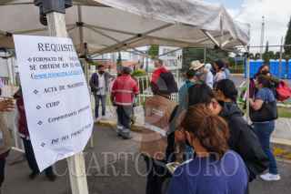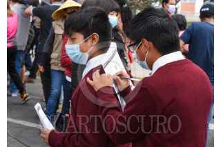 TOLUCA, ESTADO DE MÉXICO, 11MAYO2022.- Menores de 12 y 13 años de edad acudieron a la sede Regional de Vacunación instalado en la Junta Local de Caminos en Toluca, para aplicarse la vacuna contra COVID-19, desde temprana hora se pudo observar una larga fila. El biológico aplicado fue BioNTech Pfizer. La vacuna será aplicada del 11 al 13 de Mayo en 38 municipios mexiquenses. FOTO: CRISANTA ESPINOSA AGUILAR /CUARTOSCURO.COM