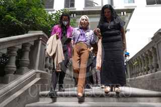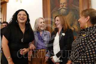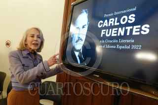 CIUDAD DE MÉXICO, 11MAYO2022.- Alejandra Frausto, secretaria de Cultura; Silvia Lemus, viuda del escritor Carlos Fuentes, y Rosa Beltrán Álvarez coordinadora de Difusión Cultural de la UNAM, encabezaron la conferencia de prensa del Premio Internacional Carlos Fuentes 2022, realizada en el Centro Cultural Los Pinos. FOTO: GRACIELA LÓPEZ /CUARTOSCURO.COM