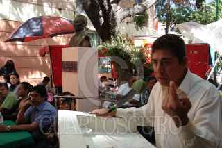 CHILPANCINGO, GUERRERO, 15DICIEMBRE2006.- El secretario general de la delegacion XVII del Sindicato Nacional de Redactores de la Prensa, Pedro Arzeta Garcia presentó su Cuarto Informe de Labores. En la imagen Rogaciano Mendez Gonzalez secretario del interior del Comite Ejecutivo Nacional del SNRP emite su mensaje. FOTO: OSCAR ALVARADO/CUARTOSCURO.COM