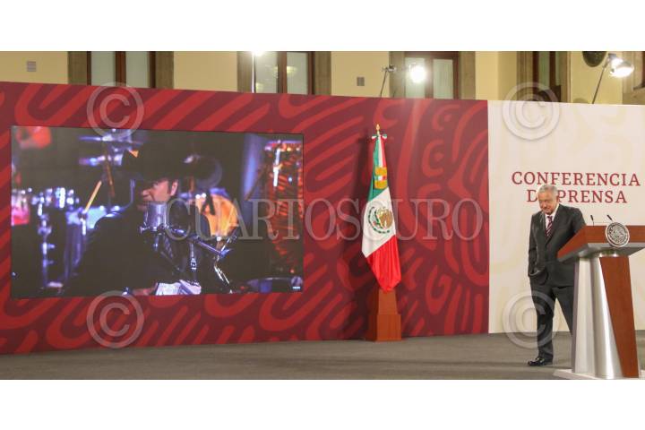 CIUDAD DE MÉXICO. 12MAYO2022.- El Presidente Andrés Manuel López Obrador, en la conferencia de prensa de esta mañana en el salón tesorería de Palacio Nacional. Lo acompaña Ricardo Mejía Berdeja. FOTO: VICTORIA VALTIERRA/CUARTOSCURO.COM