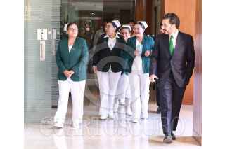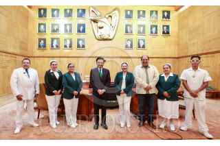 CIUDAD DE MÉXICO, 12MAYO2022.- En el marco del Día Internacional de la Enfermería que se conmemora hoy 12 de mayo, Zoé Robledo, director general del Instituto Mexicano del Seguro Social (IMSS) dialogó con enfermeras y enfermeros del Seguro Social que recibieron la Condecoración Miguel Hidalgo en Grado Collar, otorgada al personal de salud por méritos relevantes y eminentes prestados a la Patria en la atención de la emergencia sanitaria por COVID-19. FOTO: IMSS/CUARTOSCURO.COM