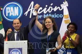 CIUDAD DE MÉXICO, 12MAYO2022.- Mariana Gómez del Campo fue nombrada presidenta de la Organización Demócrata Cristiana de América (ODCA), en el marco de su 23 congreso que se está llevando a cabo en la sede del PAN, así lo anunció Marko Cortés Mendoza. Entre los presentes estaba Andrés Pastrana, ex presidente de Colombia y actual presidente de la Internacional Demócrata de Centro (IDC-CDI). FOTO: MOISÉS PABLO/CUARTOSCURO.COM