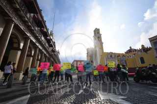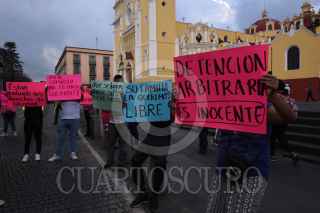 XALAPA, VERACRUZ, 12MAYO2022.- Familiares de Elpidia “N” se manifestaron en la plaza Sebastián Lerdo de Tejada de Xalapa y acusaron que es un chivo expiatorio en el caso del atropellamiento de Francisco Gómez, ciclista en la colonia Campo de Tiro. Afirman que ella era copiloto al momento del accidente y el conductor se dio a la fuga. FOTO: YERANIA ROLÓN/CUARTOSCURO.COM