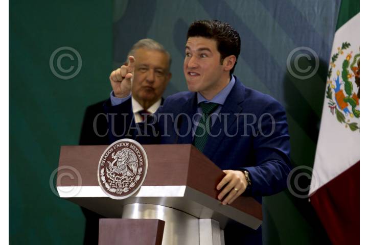APODADA, NUEVO LEÓN, 13MAYO2022.- El presidente Andrés Manuel López Obrador acudió a la Séptima Zona Militar donde sostuvo la conferencia mañanera junto al gobernador de Nuevo León; Samuel García y Luis Cresencio Sandoval; secretario de la Defensa Nacional. FOTO: GABRIELA PÉREZ MONTIEL / CUARTOSCURO.COM