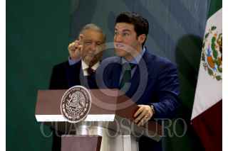 APODADA, NUEVO LEÓN, 13MAYO2022.- El presidente Andrés Manuel López Obrador acudió a la Séptima Zona Militar donde sostuvo la conferencia mañanera junto al gobernador de Nuevo León; Samuel García y Luis Cresencio Sandoval; secretario de la Defensa Nacional. FOTO: GABRIELA PÉREZ MONTIEL / CUARTOSCURO.COM