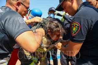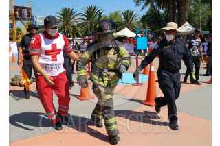 CIUDAD DE MÉXICO. 15MAYO2022.- Bomberos de Puebla y la Ciudad de México, realizaron un maratón de entrenamiento en el deportivo Magdalena Mixhuca, en la alcaldía Iztacalco. FOTO: VICTORIA VALTIERRA/CUARTOSCURO.COM