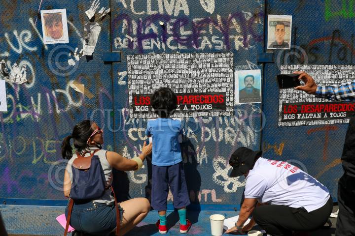 CIUDAD DE MÉXICO, 15MAYO2022.- Como hace ocho días colectivos renombraron a la Glorieta de la Palma como Glorieta de las y los Desaparecidos, esto luego de que el gobierno capitalino retira la instalación que habían colocado en el lugar hace ocho días. Los familiares hicieron pintas y pegaron rostros de personas no localizadas. FOTO: MOISÉS PABLO/CUARTOSCURO.COM