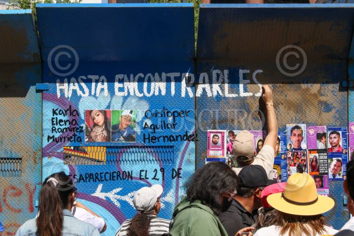 CIUDAD DE MÉXICO, 15MAYO2022.- Como hace ocho días colectivos renombraron a la Glorieta de la Palma como Glorieta de las y los Desaparecidos, esto luego de que el gobierno capitalino retira la instalación que habían colocado en el lugar hace ocho días. Los familiares hicieron pintas y pegaron rostros de personas no localizadas. FOTO: MOISÉS PABLO/CUARTOSCURO.COM