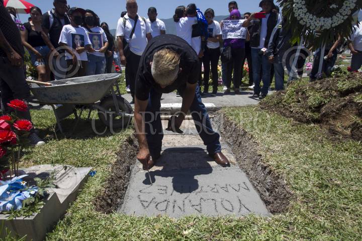 CD. BENITO JUÁREZ, NUEVO LEÓN, 15MAYO2022.- Se llevó a cabo el sepelio de Yolanda Martínez en el panteón Jardín de los Pinos en el municipio de Juárez, Nuevo León. Gerardo Martínez, padre de Yolanda, ofreció unas palabras para su hija. Yolanda de 26 años fue encontrada muerta en un terreno baldío en el municipio de Juárez después de 38 días de haber desaparecido. FOTO: GABRIELA PÉREZ MONTIEL / CUARTOSCURO.COM