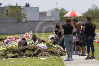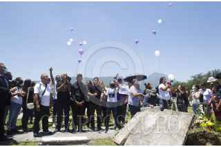 CD. BENITO JUÁREZ, NUEVO LEÓN, 15MAYO2022.- Se llevó a cabo el sepelio de Yolanda Martínez en el panteón Jardín de los Pinos en el municipio de Juárez, Nuevo León. Gerardo Martínez, padre de Yolanda, ofreció unas palabras para su hija. Yolanda de 26 años fue encontrada muerta en un terreno baldío en el municipio de Juárez después de 38 días de haber desaparecido. FOTO: GABRIELA PÉREZ MONTIEL / CUARTOSCURO.COM