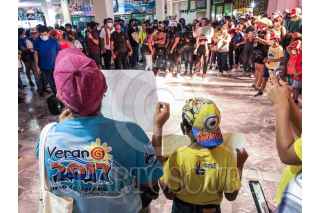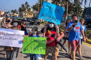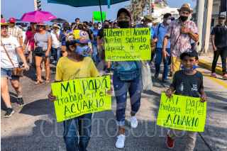 VERACRUZ, VERACRUZ, 15MAYO2022.- Trabajadores del Acuario de Veracruz acompañados de sus familiares realizaron una marcha en protesta por la clausura del recinto que realizó la Procuraduría del Medio Ambiente. "Liberen el Acuario", se lee en las pancartas que portan algunos menores que caminan junto a sus padres. FOTO: YERANIA ROLÓN/CUARTOSCURO.COM