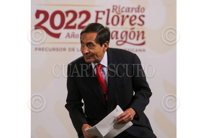 CIUDAD DE MÉXICO, 16MAYO2022.- Andrés Manuel López Obrador, Presidente de México, durante su conferencia mañanera en Palacio Nacional, en donde explicó el aumento del salario de los maestros. Lo acompañaron Ricardo Sheffield Padilla, titular de la Profeco; Rogelio Ramírez de la O, secretario de Hacienda; Delfina Gómez titular de la SEP, y Roberto Salcedo Aquino, titular de la Secretaría de la Función Pública (SFP). FOTO: MOISÉS PABLO/CUARTOSCURO.COM