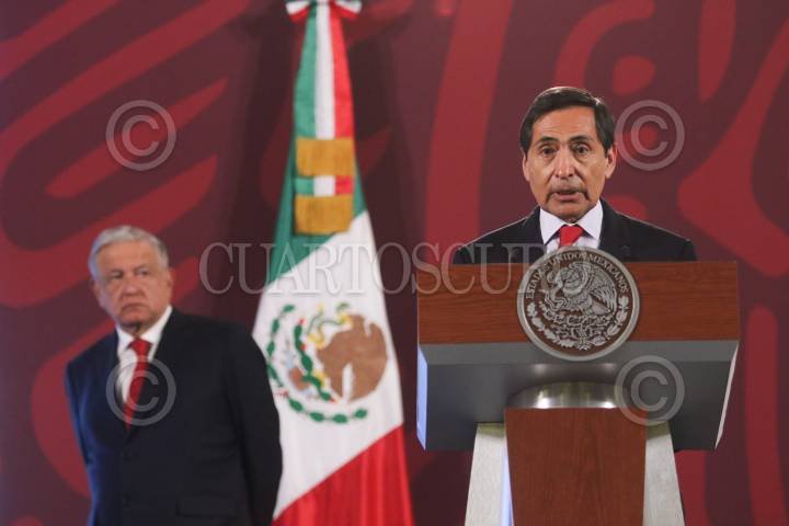 CIUDAD DE MÉXICO, 16MAYO2022.- Andrés Manuel López Obrador, Presidente de México, durante su conferencia mañanera en Palacio Nacional, en donde explicó el aumento del salario de los maestros. Lo acompañaron Ricardo Sheffield Padilla, titular de la Profeco; Rogelio Ramírez de la O, secretario de Hacienda; Delfina Gómez titular de la SEP, y Roberto Salcedo Aquino, titular de la Secretaría de la Función Pública (SFP). FOTO: MOISÉS PABLO/CUARTOSCURO.COM