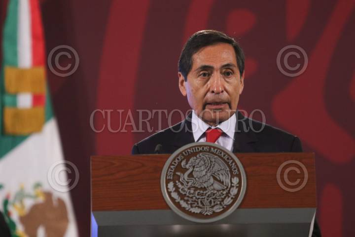 CIUDAD DE MÉXICO, 16MAYO2022.- Andrés Manuel López Obrador, Presidente de México, durante su conferencia mañanera en Palacio Nacional, en donde explicó el aumento del salario de los maestros. Lo acompañaron Ricardo Sheffield Padilla, titular de la Profeco; Rogelio Ramírez de la O, secretario de Hacienda; Delfina Gómez titular de la SEP, y Roberto Salcedo Aquino, titular de la Secretaría de la Función Pública (SFP). FOTO: MOISÉS PABLO/CUARTOSCURO.COM