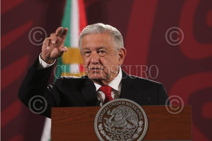 CIUDAD DE MÉXICO, 16MAYO2022.- Andrés Manuel López Obrador, Presidente de México, durante su conferencia mañanera en Palacio Nacional, en donde explicó el aumento del salario de los maestros. Lo acompañaron Ricardo Sheffield Padilla, titular de la Profeco; Rogelio Ramírez de la O, secretario de Hacienda; Delfina Gómez titular de la SEP, y Roberto Salcedo Aquino, titular de la Secretaría de la Función Pública (SFP). FOTO: MOISÉS PABLO/CUARTOSCURO.COM