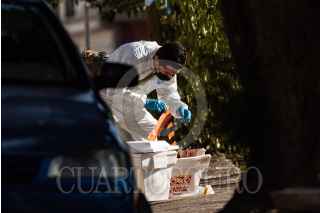 ZACATECAS, ZACATECAS, 16MAYO2022.- Esta mañana fueron localizados restos humanos de por lo menos dos personas a lo largo de la calle Roberto Cabral del Hoyo, de la colonia Díaz Ordaz en el centro histórico de la capital. Al rededor de las 07:30 hrs, corporaciones policiacas fueron alertadas por los vecinos del hallazgo de partes de cuerpo humano envueltas en telas, bolsas y dos hieleras del Oxxo, la que además, contenía un mensaje de un grupo del crimen organizado; a lo largo de la calle en donde se instala el tianguis de La Fayuca. Policía municipal y de investigación acordonaron la zona para que peritos de la Fiscalía realizara el levantamiento de los restos humanos y realizar las primeras investigaciones. FOTO: GENARO NATERA /CUARTOSCURO.COM