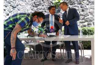 CIUDAD DE MÉXICO. 16MAYO2022.- Uriel Sánchez, José Luis García Miranda y Sergio Arturo Ramírez; en conferencia de prensa presentaron la resolución del juzgado de la cooperativa Cruz Azul. FOTO: VICTORIA VALTIERRA/CUARTOSCURO.COM