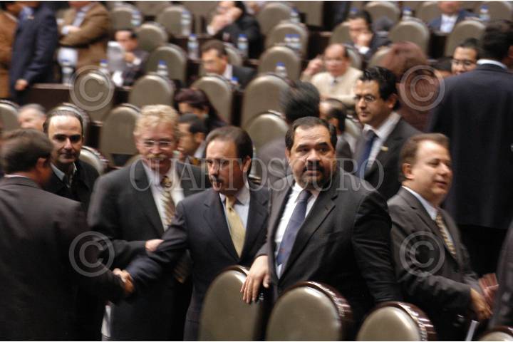 MÉXICO D.F. 21DICIEMBRE2006.- El diputado José Antonio Almazán, Adrian Pedroza y Alejandro Sánchez, durante su conferencia de prensa en la cámara de diputados donde se menciono que el aumento al salario es una burla para el trabajador. FOTO: GUILLERMO PEREA/CUARTOSCURO.COM