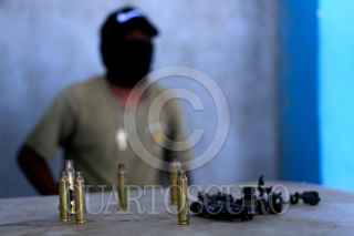 ALTO DE MONTE, GUERRERO, 16MAYO2022.- Integrantes de la policía ciudadana de la Unión de Pueblos y Organizaciones del Estado de Guerrero (UPOEG) denunciaron que el día viernes fueron atacados con armas de fuego presuntamente por soldados del ejército mexicano, en donde dos policías resultaron heridos, en respuesta a estos hechos comerciantes y transportistas realizaron varios bloqueos desde la región de Costa Chica hasta el puerto de Acapulco, también se deslindaron de las dos armar de uso exclusivo que los soldados decomisaron a lo que ellos llamaron irrupción a la comunidad de Alto de Ventura. FOTO: CARLOS ALBERTO CARBAJAL/CUARTOSCURO.COM