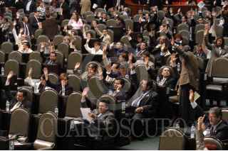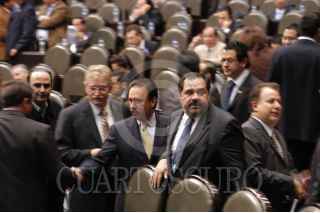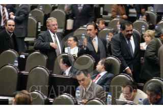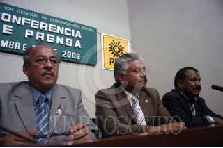 MÉXICO D.F. 21DICIEMBRE2006.- El diputado José Antonio Almazán, Adrian Pedroza y Alejandro Sánchez, durante su conferencia de prensa en la cámara de diputados donde se menciono que el aumento al salario es una burla para el trabajador. FOTO: GUILLERMO PEREA/CUARTOSCURO.COM