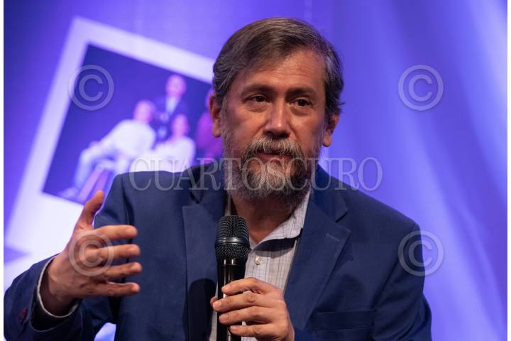 CIUDAD DE MÉXICO, 17MAYO2022.- Laura García, Pablo Boullosa, Eduardo Casar, conductores de "La Dichosa Palabra"; el director general de Canal 22, Armando Casas Pérez, y el vocero de la Secretaría de Cultura, Isaac Macip Martínez durante la Conferencia de prensa para dar a conocer los pormenores de la nueva temporada de “La Dichosa Palabra” que regresa después de dos años a transmitirse en vivo. FOTO: ANDREA MURCIA /CUARTOSCURO.COM