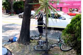 NAUCALPAN, ESTADO DE MÉXICO, 17MAYO2022.- Un hombre murió de un presunto infarto al corazón cuando circulaba en su bicicleta en la Vía Gustavo Baz y Calle de Hacienda Temixco, en la colonia Modelo. FOTO: ROGELIO MORALES/CUARTOSCURO.COM