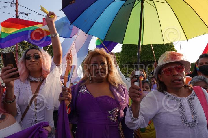 CIUDAD DE MÉXICO, 17MAYO2022.- Integrantes de la comunidad LGBTTTEQ+ caminaron en conmemoración del "Día Nacional contra la Homofobia, Transfobia y Biofobia" en la alcaldía Venustiano Carranza. Durante su llegada Evelyn Parra, alcaldesa de esta demarcación, los recibió en un acto simbólico en la explanada. FOTO: GRACIELA LÓPEZ /CUARTOSCURO.COM