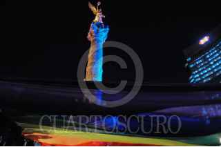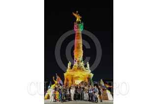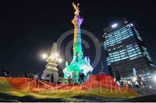 CIUDAD DE MÉXICO, 17MAYO2022.- Esta noche, el gobierno capitalino iluminó los distintos monumentos de la Ciudad de México para conmemorar el Día Internacional contra la Homofobia, Lesbofobia, Transfobia y Bifobia, tal es el caso del Ángel de la Independencia, el cual lucio los colores de la bandera Lgbt +. FOTO: DANIEL AUGUSTO /CUARTOSCURO.COM