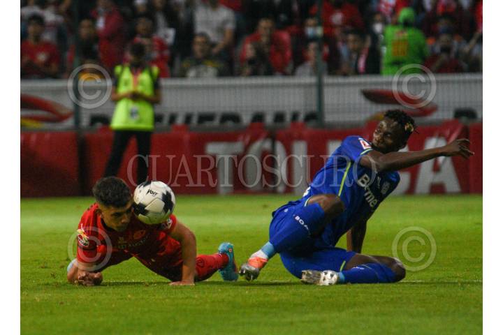 TOLUCA, ESTADO DE MÉXICO, 17MAYO2022.- Los Diablos de Toluca recibieron en la cancha del estadio Nemesio Diez al Bayer 04 Leverkusen, en un duelo amistoso internacional, como parte de la gira por México para celebrar los 100 años de Bayer. La escuadra escarlata logró la victoria con un marcador final 1-0. FOTO: CRISANTA ESPINOSA AGUILAR /CUARTOSCURO.COM