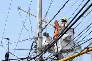 CUERNAVACA, MORELOS, 18MAYO2022.- Un trabajador de la Comisión Federal de Electricidad realiza maniobras entre cables de energía en la capital de Morelos. FOTO: MARGARITO PÉREZ RETANA / CUARTOSCURO.COM