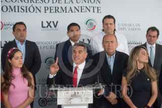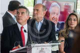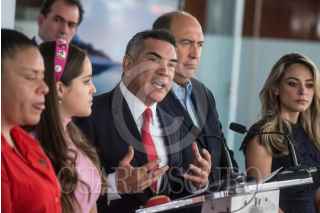 CIUDAD DE MÉXICO, 18MAYO2022.- Alejandro Moreno Cárdenas, dirigente nacional del PRI, junto a legisladores, ofreció conferencia de prensa para informar que la coalición "Va por México", presentará una denuncia en contra de Morena por el presunto uso de los programas sociales para condicionar el voto en las próximas elecciones. FOTO: MARIO JASSO/CUARTOSCURO.COM