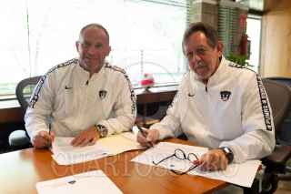 CIUDAD DE MÉXICO, 18MAYO2022.- El entrenador Andrés Lillini firmó la renovación de contrato como director técnico de Pumas, el cual tendrá una vigencia del 1 de julio de este año al 31 de diciembre de 2023. El estratega argentino, quien está al frente del primer equipo varonil del Club Universidad desde el 23 de julio de 2020, señaló al respecto: “Estoy muy feliz, estoy muy agradecido por la confianza que han tenido en mí y me siento orgulloso de seguir perteneciendo a este gran equipo, que es Pumas. También, tengo la satisfacción de recibir una nueva oportunidad de trabajar para llevar a cabo el proyecto de devolverle un campeonato a esta gran institución”. FOTO: CLUB PUMAS/CUARTOSCURO.COM